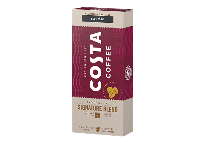 Jedinstveni blend Arabica i Robusta zrna pružaju ukus lešnika kada se spoji sa mlekom. Signature Blend je jednako pitak i kao espresso, bez mleka, zbog svog punog ukusa nota karamele, mlečne čokolade i badema.